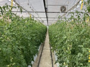 この8月から10名を超す新規就農者グループとの新規取引開始に向け、2軒のビニールハウスを視察させていただきました。少量多品目の就農者さんとトマト栽培に特化した就労者さん。これまで懸案だった地場野菜の少ない冬場(1〜3月)の確保にめどが立ちそうです。